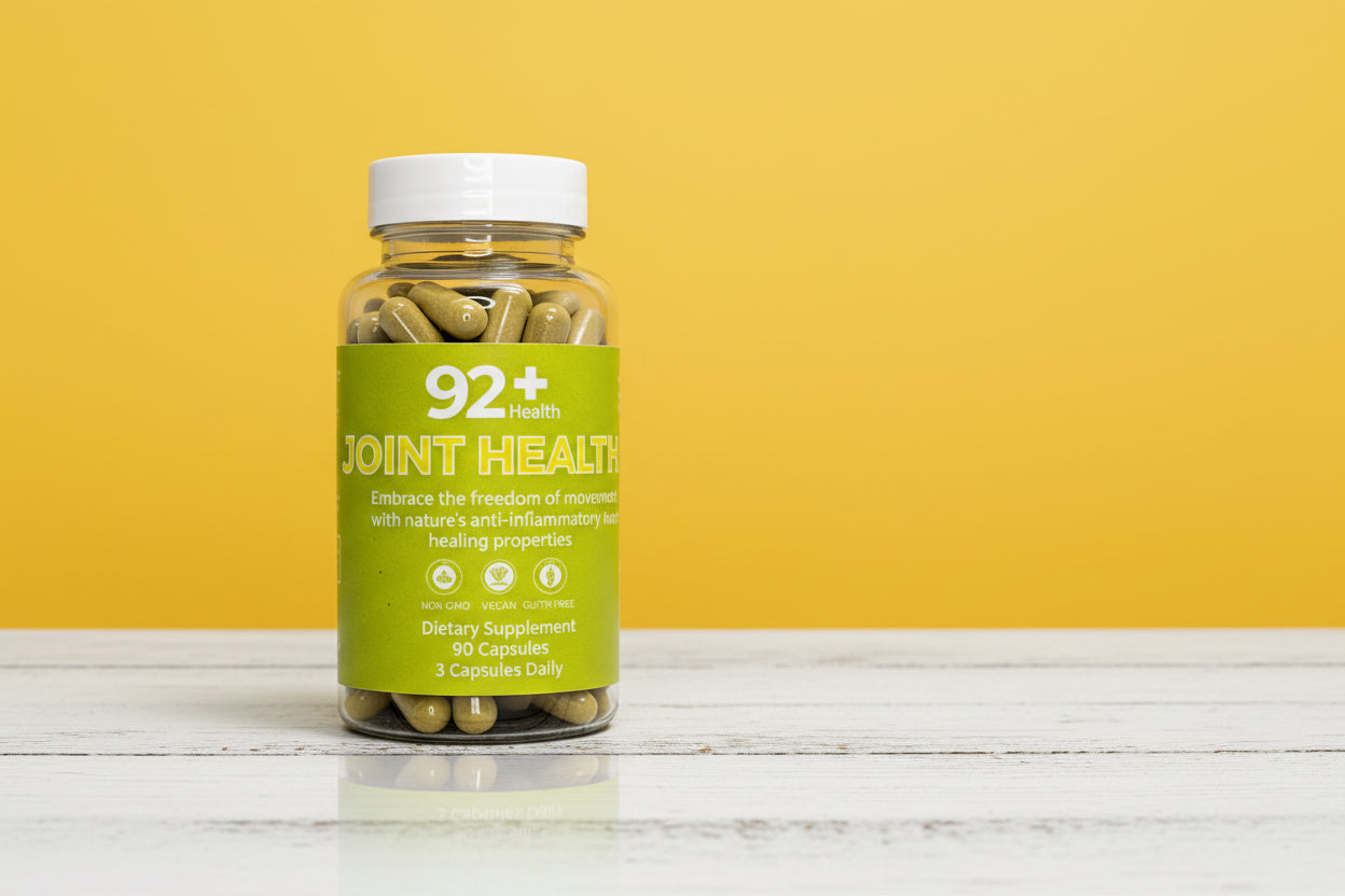 Unlock the potential of your joints with our innovative 92+ Joint Health Capsules. Each capsule is a powerhouse, featuring a potent blend of natural ingredients renowned for their anti-inflammatory and healing properties.